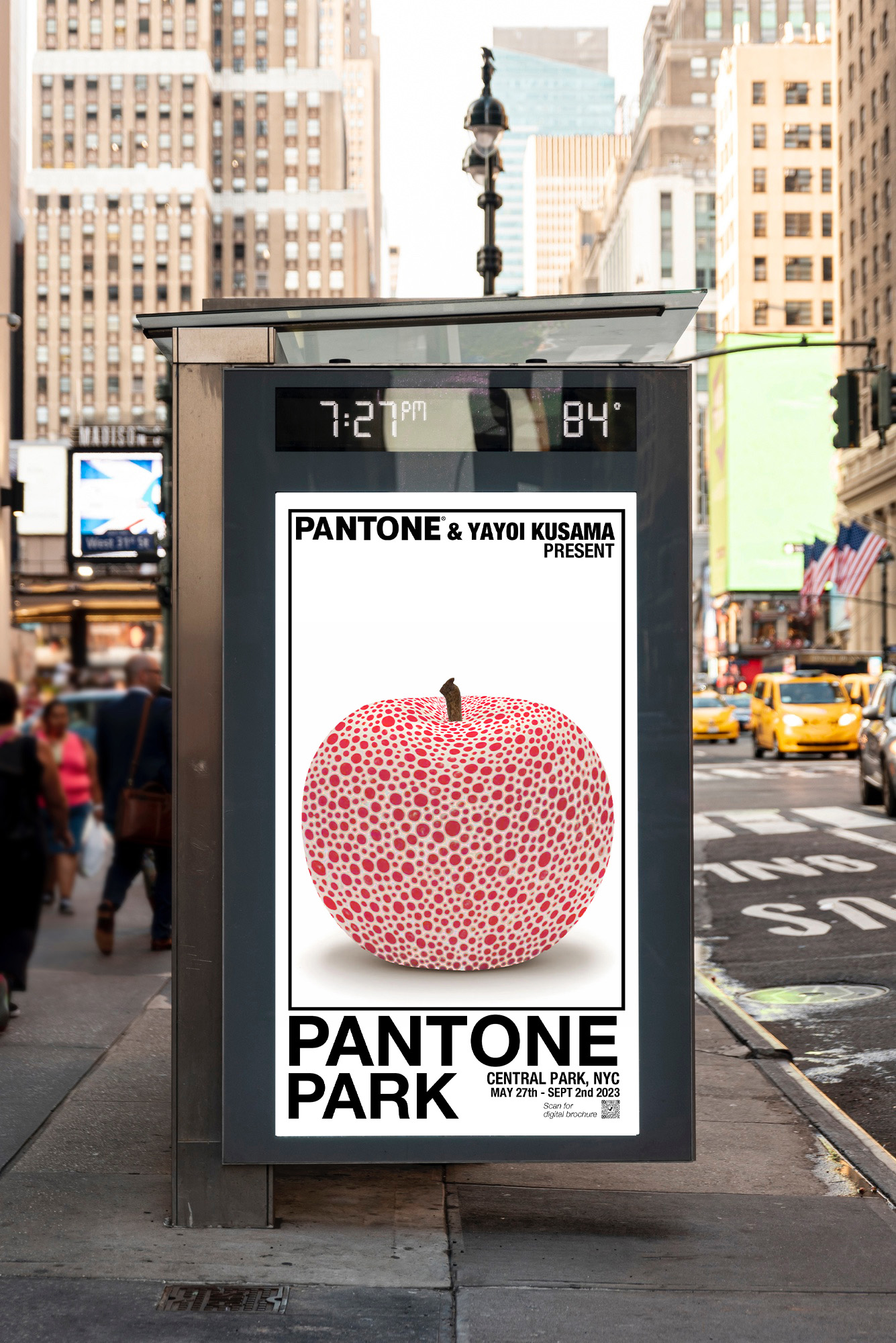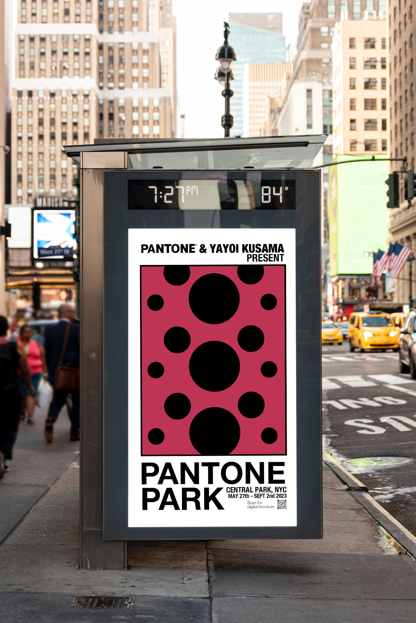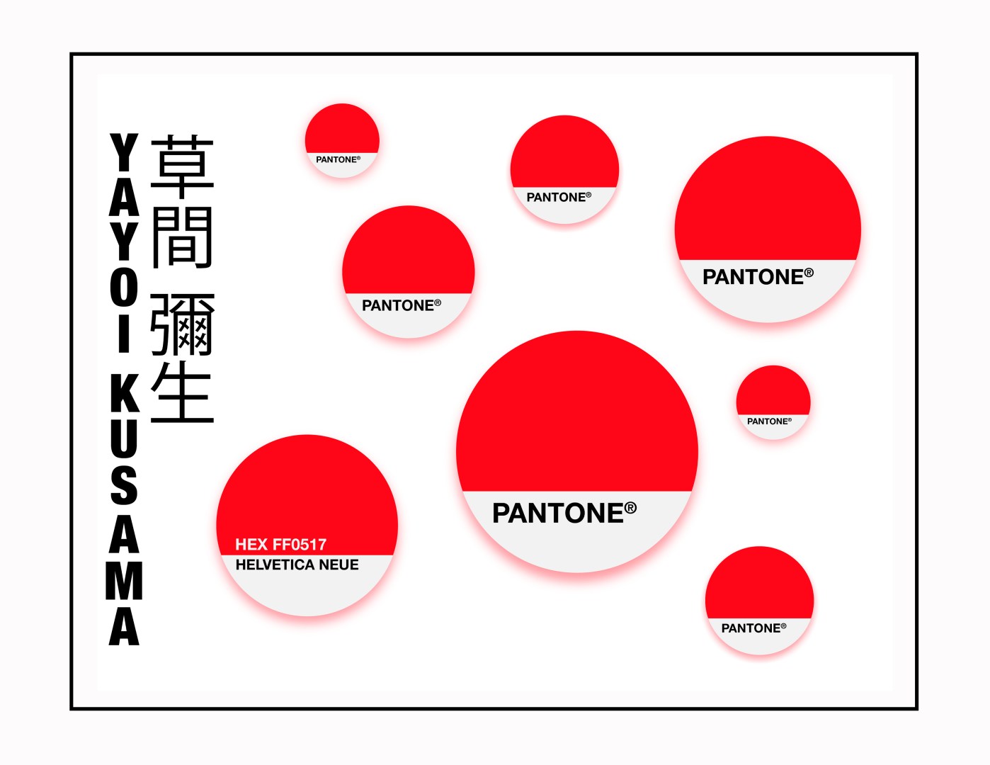 The inspiration behind the logo for this collaborative project between Yayoi Kusama and Pantone is a harmonious blend of cultural heritage and minimalist design principles. Drawing upon the visual identity of three essential colors—black, white, and red—the logo pays homage to both Japanese tradition and the vibrant energy of New York City. Red, reminiscent of the Japanese flag and infused with cultural symbolism, adds a dynamic flair that contrasts boldly against the timeless simplicity of black and white. This choice not only reflects Kusama’s Japanese roots but also serves as a nod to the iconic Big Apple, the playground where her art invites us to explore. The minimalist design, with its repetition of circles contained within a square outline reminiscent of the Pantone logo, further emphasizes the project’s connection to Japanese aesthetics while offering a contemporary and visually striking representation. Thus, the logo becomes a symbolic fusion of tradition and innovation, embodying the collaborative spirit between two iconic entities in the world of art and design.